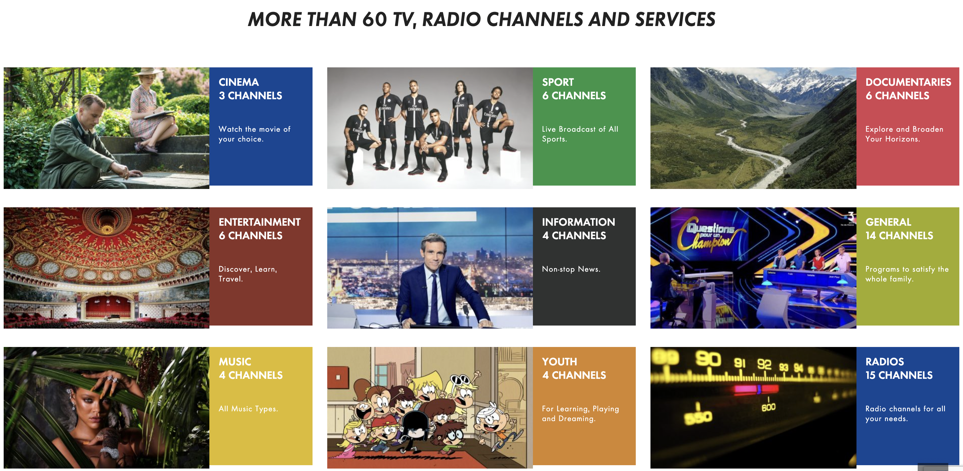 De grands films, du sport en passant par des informations en direct et en continu ou bien encore des programmes pour les jeunes.