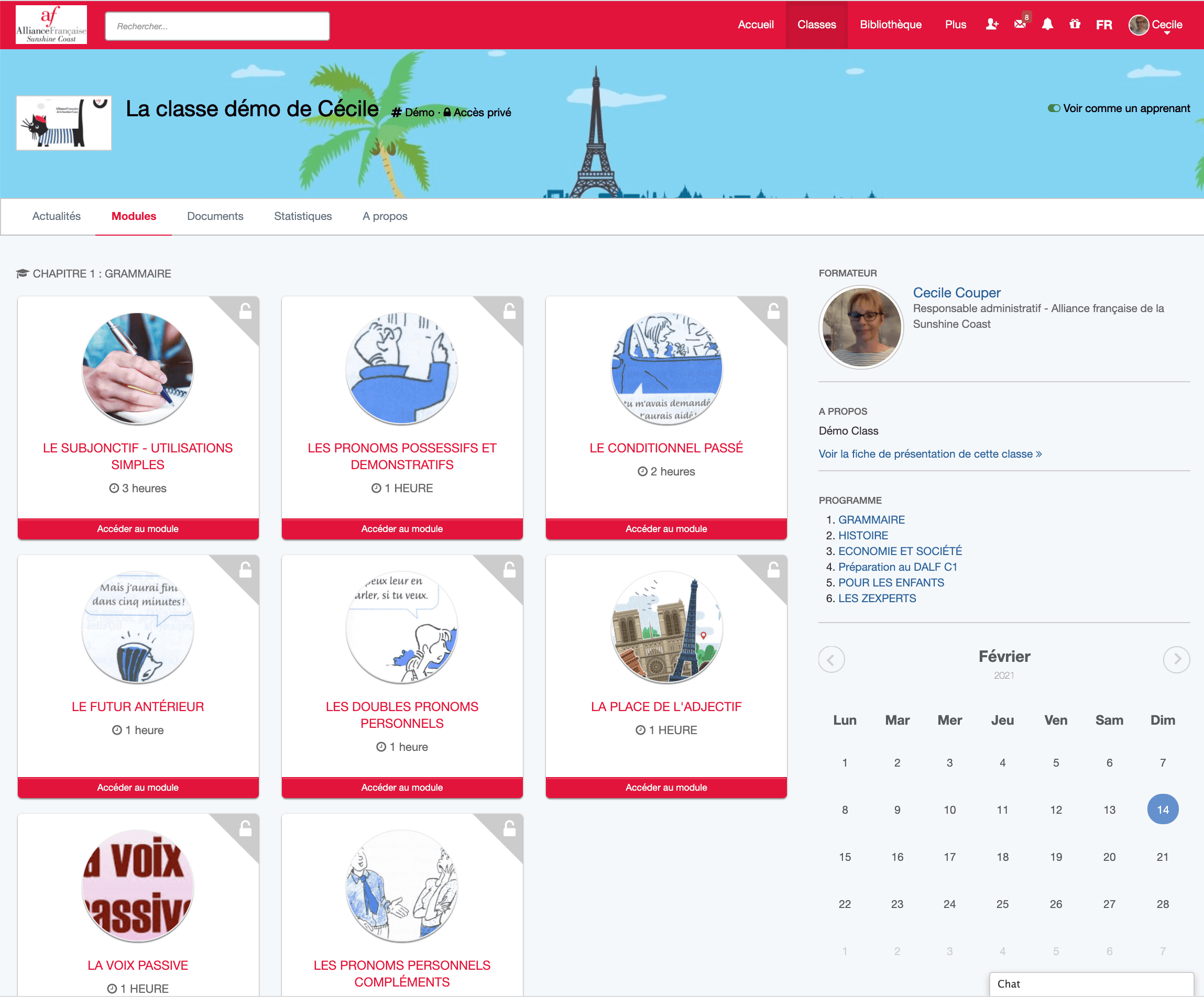 The Alliance Française de la Sunshine Coast uses Apolearn, the LMS social platform for trainings in blended learning, MOOC and SPOC.