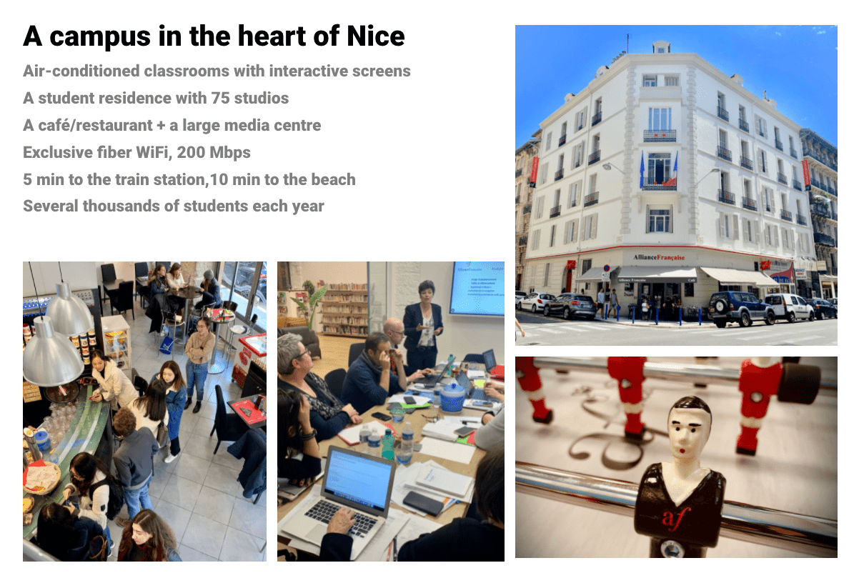 The Alliance Française de la Sunshine Coast has a partnership with AF Nice which allows you to book intensive French courses in Nice at discounted prices. Click on the image to be directed to the AF Nice Website.